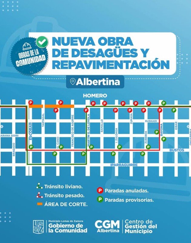 Este lunes comenzaron los trabajos de infraestructura hídrica y pavimentación en Albertina. El Municipio de Lomas de Zamora comenzó a intervenir la calle Homero, en el tramo comprendido entre El Cano y Escobar, con una obra que combina dos frentes: primero se ejecutarán tareas hidráulicas para mejorar el escurrimiento del agua, y luego se avanzará con la pavimentación en hormigón. La intervención apunta a optimizar tanto la circulación vehicular como la infraestructura del barrio.